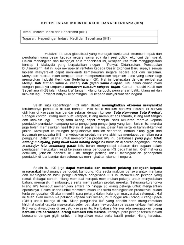 KEPENTINGAN INDUSTRI KECIL DAN SEDERHANA IKS Mutakhir ini arus globalisasi yang menerjah dunia telah memberi impak dan perubahan yang besar kepada negara sama ada dari. Industri Kecil dan Sederhana IKS dapat membuka dan menawarkan peluang pekerjaan yang banyak kepada masyarakat terutamanya. 1 1 1 6 Maksud IKS Masalah IKS dan Cara Mengatasi 1 2 Ciri-ciri IKS 3 Kegiatan IKS 4 Kepentingan IKS 5 Kaitan IKS denganIndustriBesar.